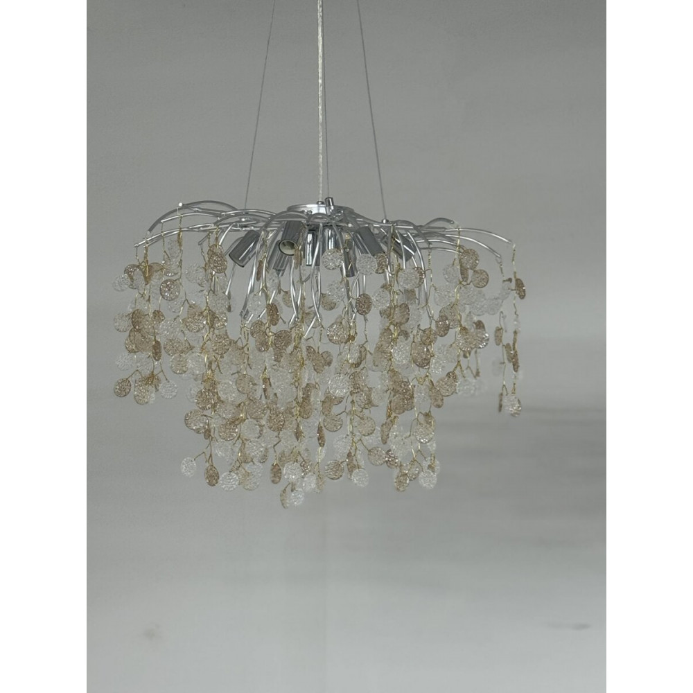 Витончена підвісна люстра WM-7002 400-G9*5-38 CR поєднує прозорий кришталь з бурштиновими відтінками, створюючи неймовірну гру світла. Основа виконана у срібному кольорі, що додає легкості та витонченості. Така люстра стане чудовим вибором для сучасного інтер'єру, надаючи йому особливого шарму та розкоші.