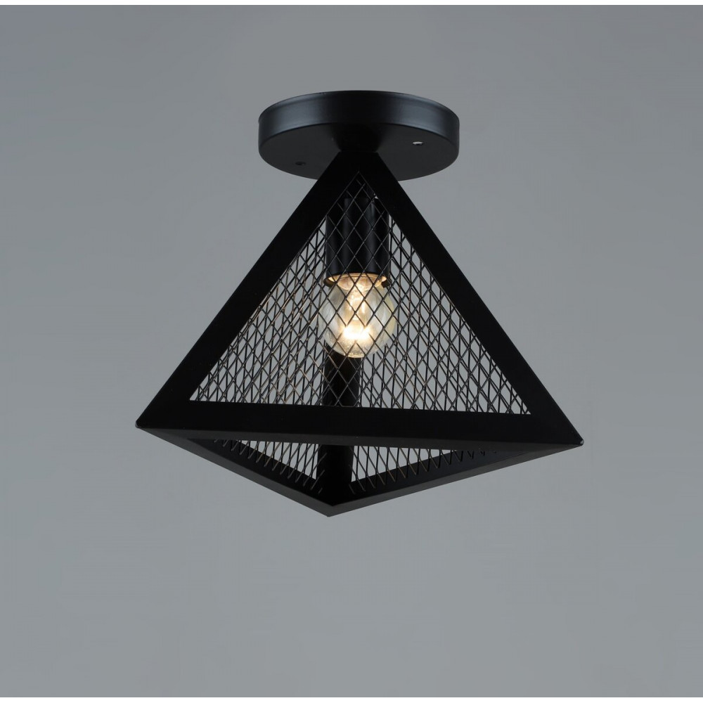 Форма люстри є трикутною, що надає їй цікавий геометричний елемент. В середині трикутної форми знаходиться сіточка, яка додає особливості та характеру до дизайну. Цей елемент створює привабливий графічний ефект і розсіює світло з лампочки, додаючи цікавого світлового візуального ефекту.