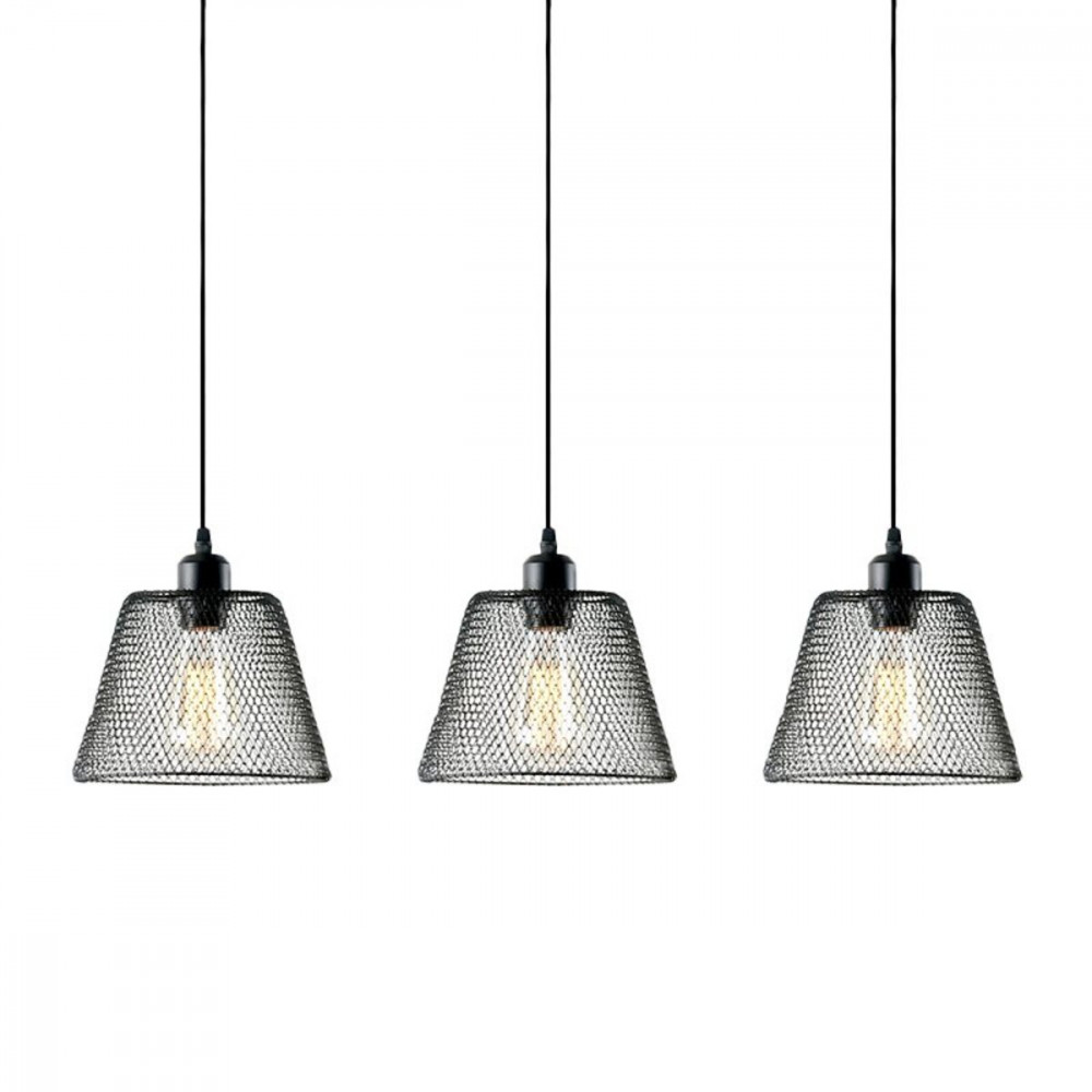 З довжиною 600мм шириною 210 мм та висотою 1000 мм, ця підвісна люстра вражає своєю гармонією та вишуканістю. Виготовлена з металу в чорному матовому кольорі, вона створює лаконічний та сучасний образ. Три мееталеві плафони з прутиків у вигляді сіточки доцільно доповнює дизайн, а цоколь E27 призначений для лампочок до 60 Ватт.