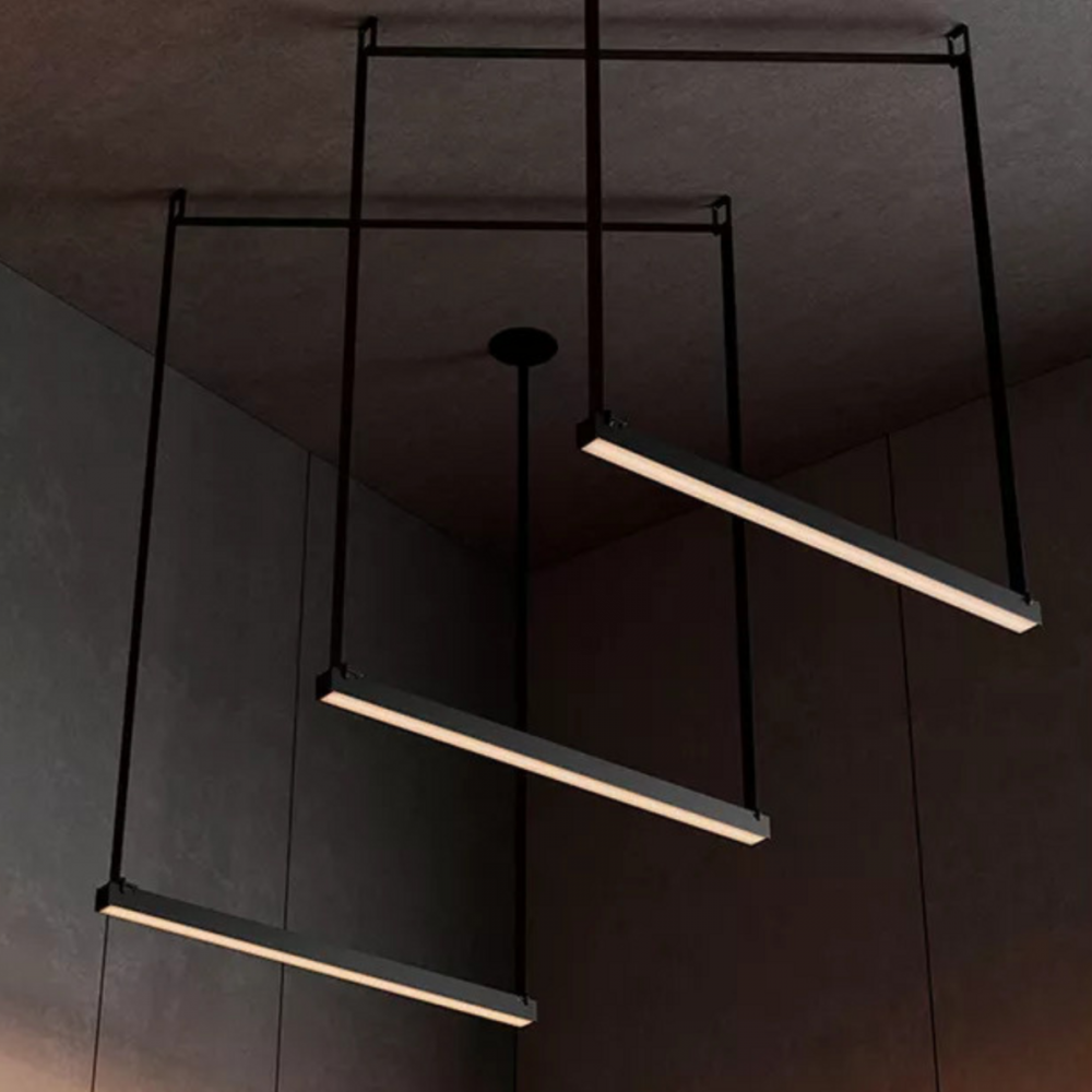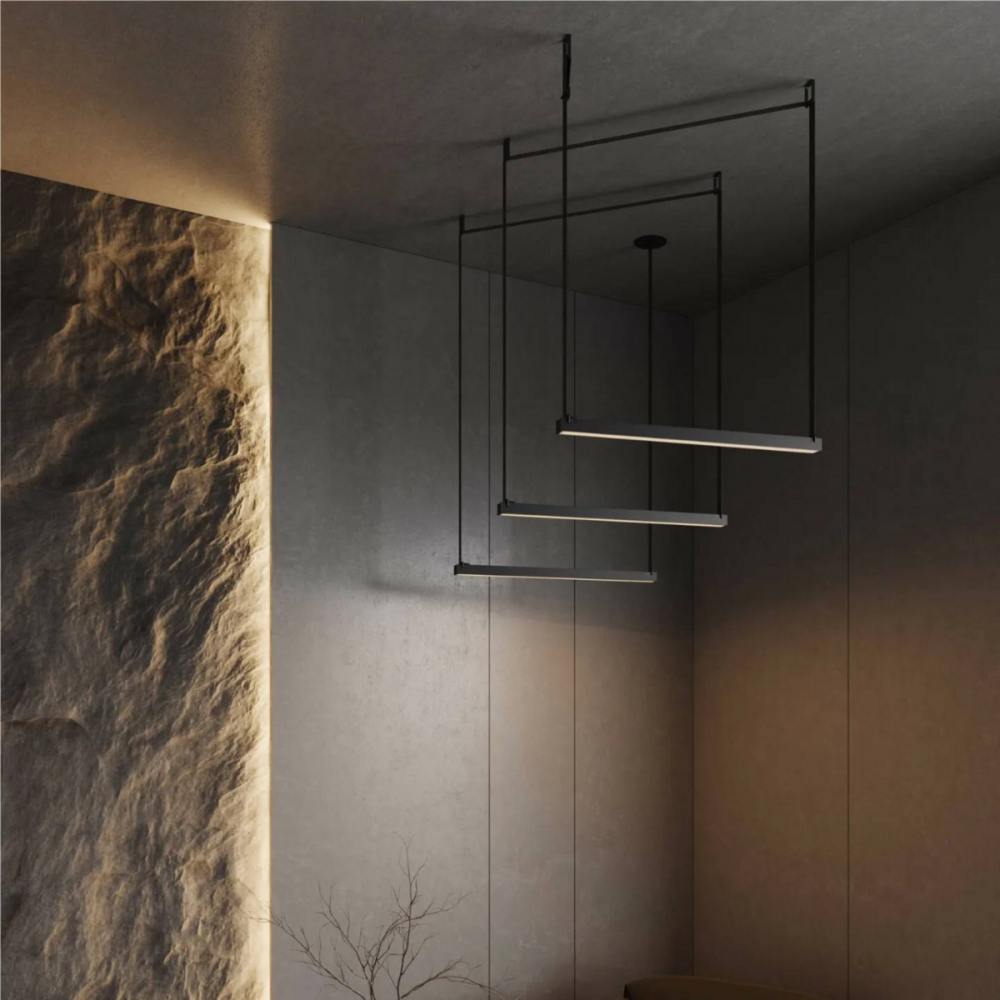 Дизайнерські підвісні треки — трансформери VALESO Композиція - 8 в чорному кольорі – це шедевр сучасного освітлення, який поєднує інноваційні технології, витончені матеріали та унікальний дизайн.