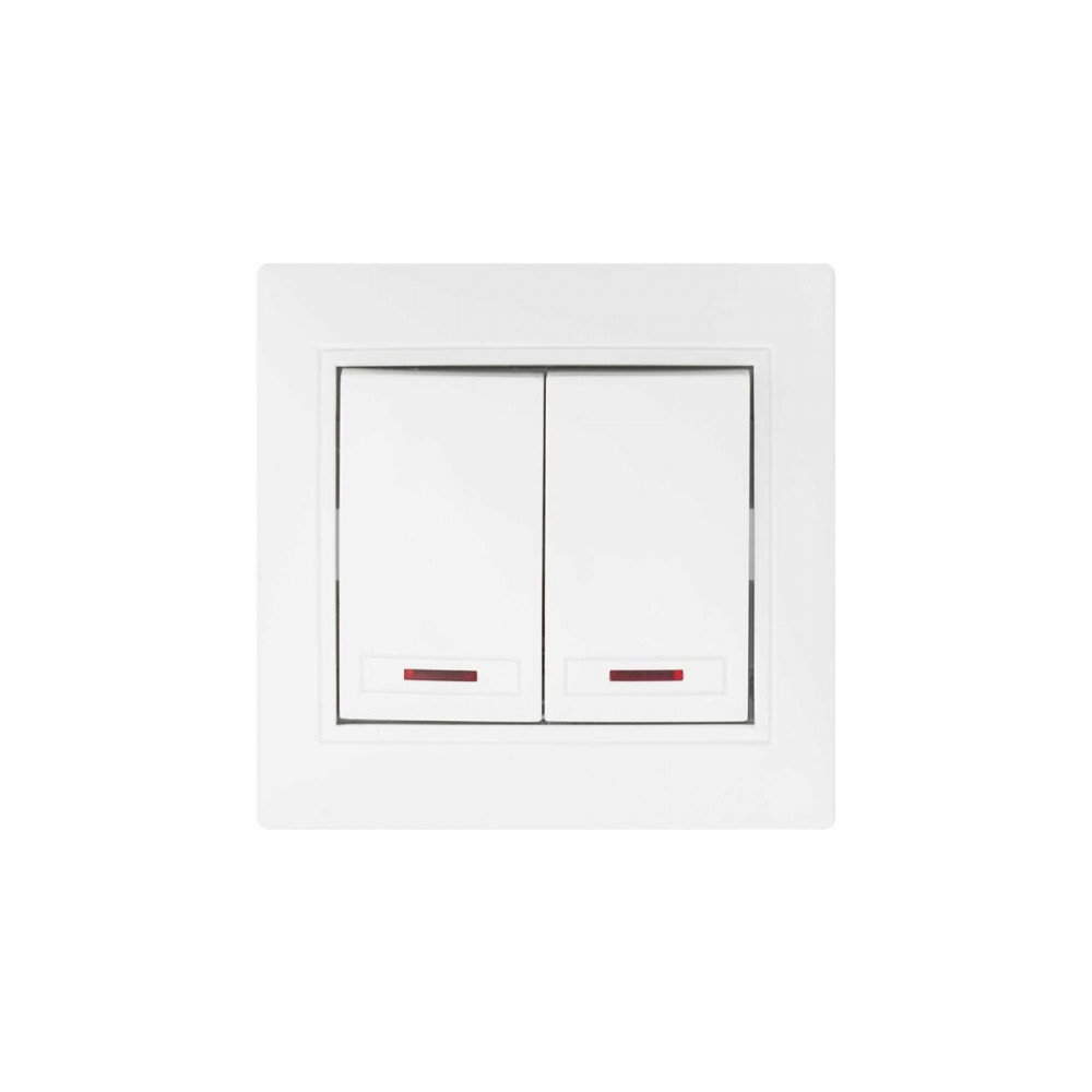 Вимикач 2-клавішний з підсвіткою білий Valeso BW-2002