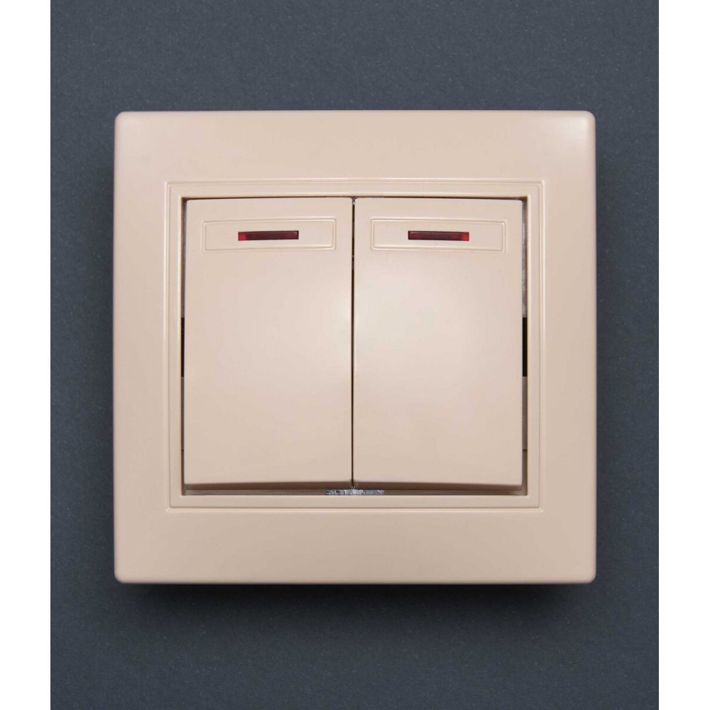 Вимикач 2-клавішний з підсвіткою крем Valeso BK-2002