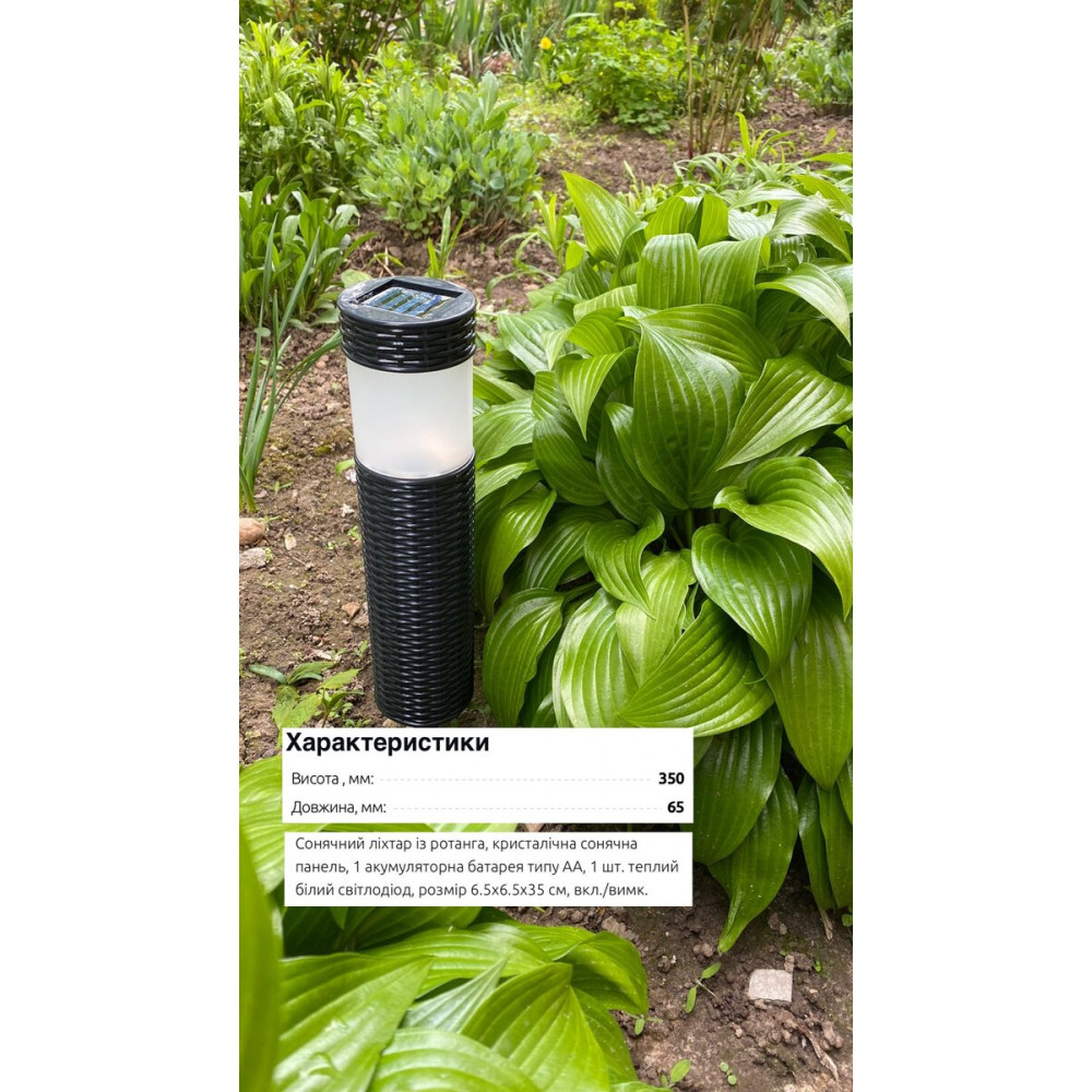 Зручний розмір 6.5x6.5x35 см дозволяє легко розмістити ліхтар на будь-якій ділянці. Він працює в автономному режимі завдяки вбудованій акумуляторній батареї типу АА, що дозволяє вам насолоджуватися його світлом без потреби у зовнішньому живленні.