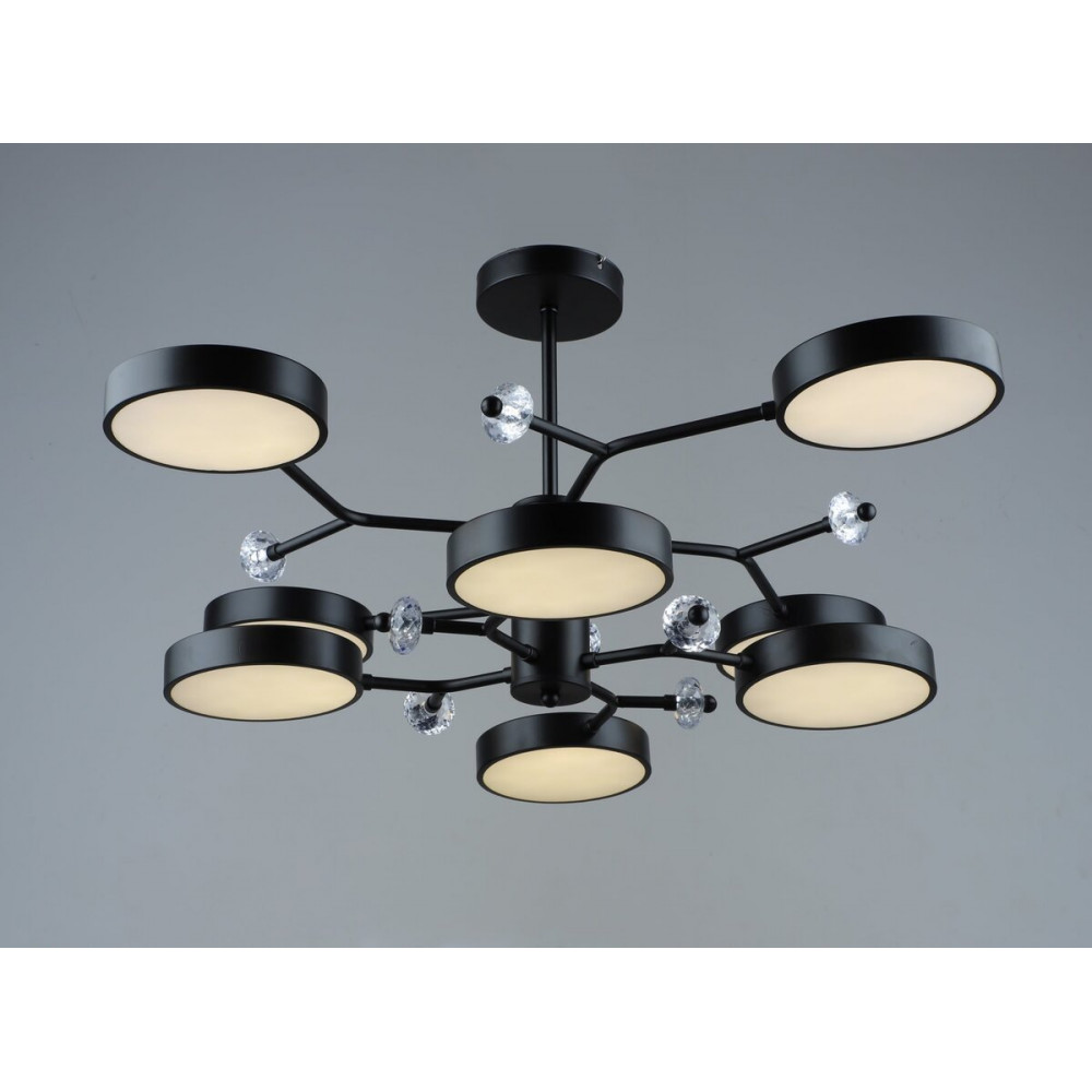 Ця люстра має 8 плафонів, розташованих у різних напрямках, що створює вражаючу гру світла і тіней. Розташування плафонів у різні боки додає неочікуваності і динаміки в дизайні люстри.