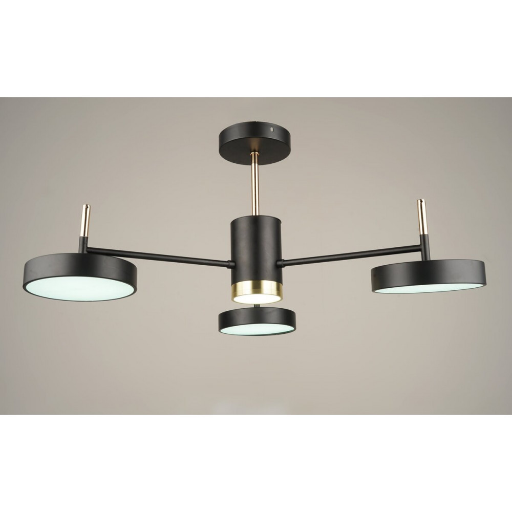 Каркас виготовлений з міцного металу чорного та позолоченого кольору, що додає люстрі сучасного та стильного вигляду. Три круглих плафони виготовлені з акрилу рівномірно розподіляють світло, створюючи затишну атмосферу.