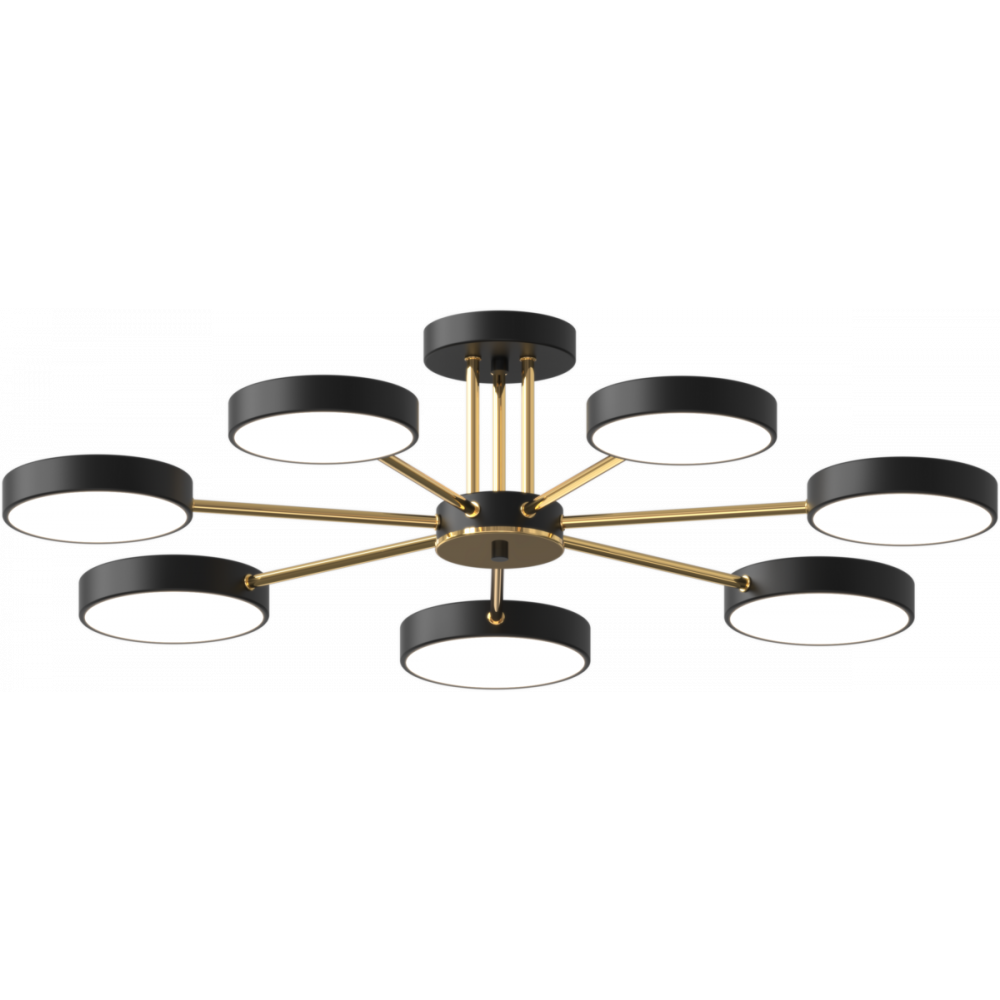 Каркас виготовлений з металу чорного та позолоченого кольору, надаючи люстрі сучасний та елегантний вигляд. Загальна потужність люстри складає 126 Ватт, а колірна температура може бути легко регульована від теплого до холодного, щоб відповідати вашим потребам та настрою.