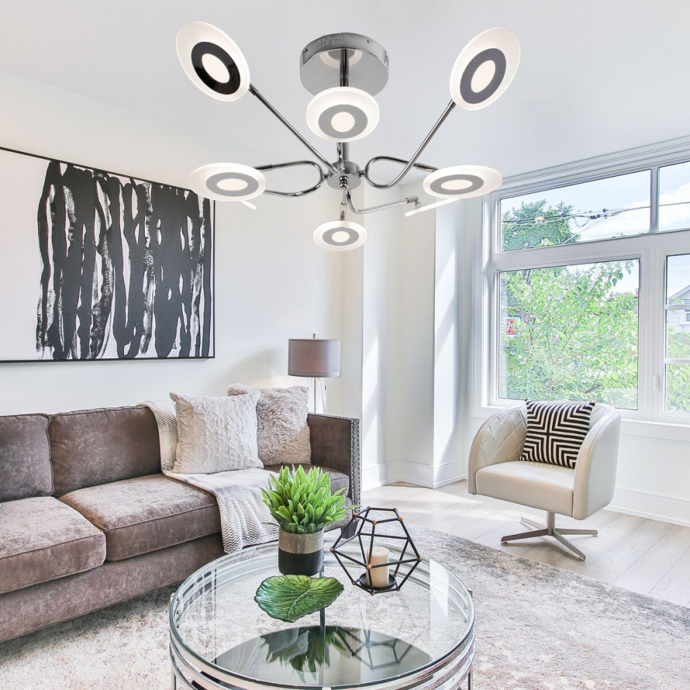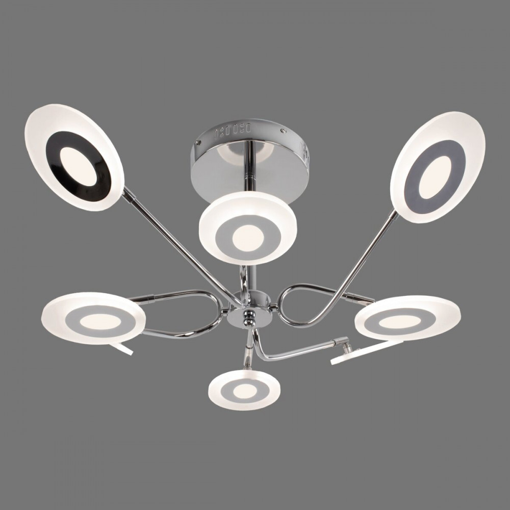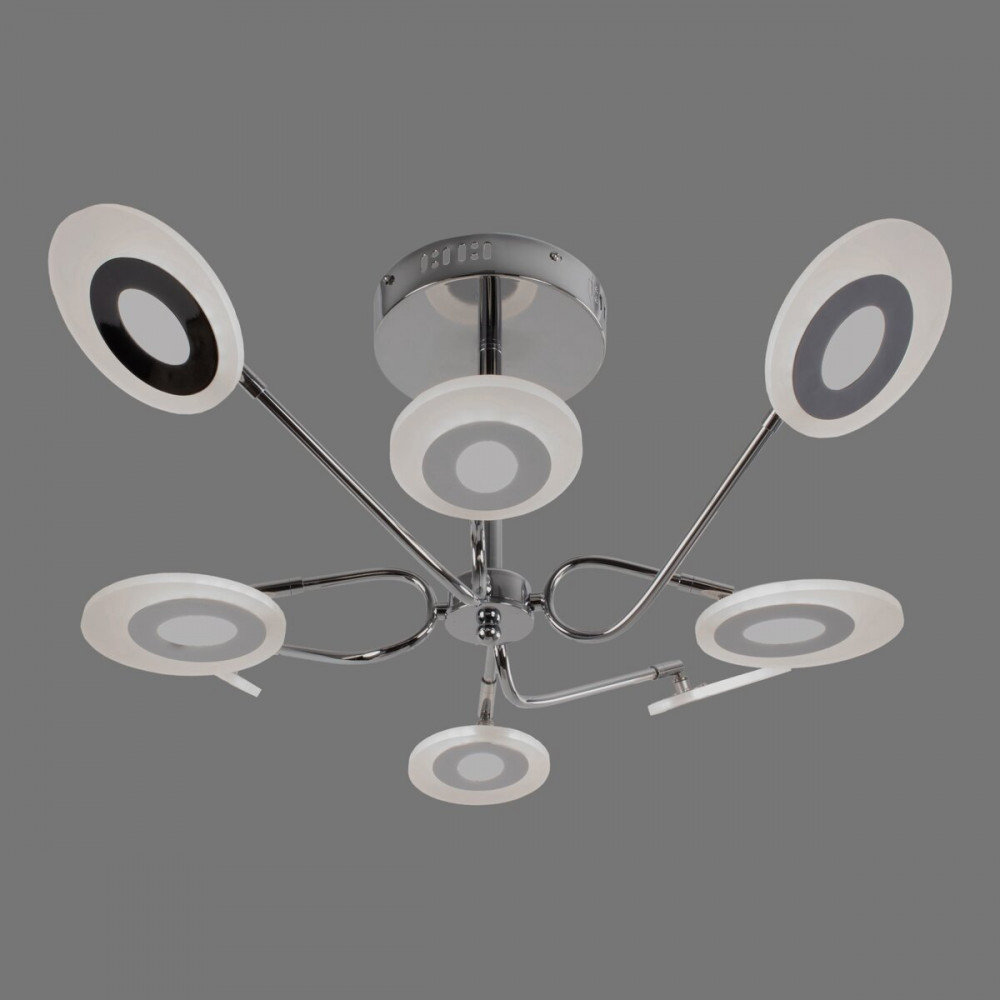 Каркас з металу в хромовому кольорі відмінно поєднується із 8 круглими плафонами з акрилу, створюючи атмосферу розкоші та елегантності. Вбудовані діоди гарантують не тільки яскраве світло, але й тривалу службу, щоб ваш простір завжди був наповнений світлом.