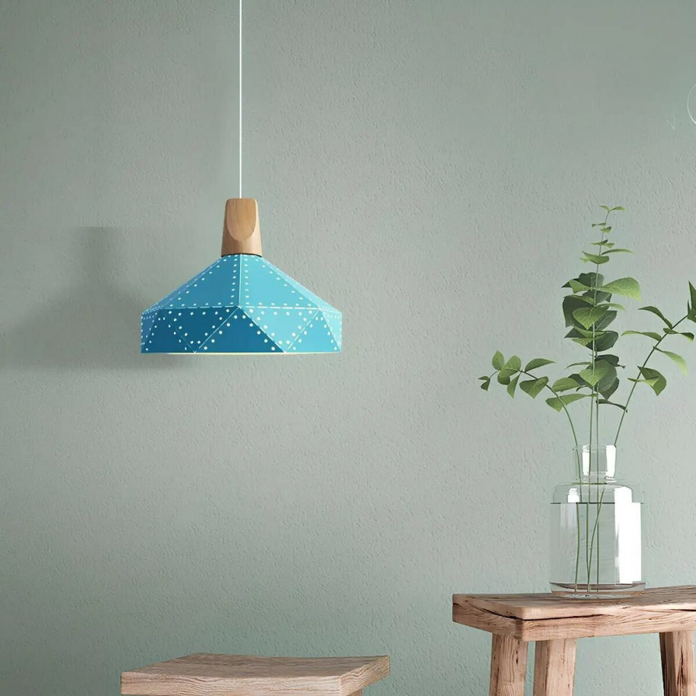 Люстра в скандинавському стилі з елементами лофт-дизайну стане стильним акцентом у вашому домі. Її блакитний матовий корпус із дерева та металу виглядає елегантно та сучасно.