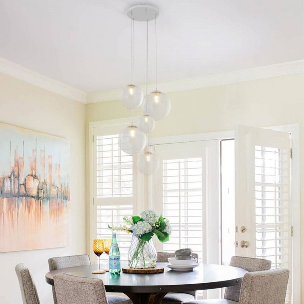 У цієї люстри 5 плафонів зі скла круглої форми прозорі, додають розкішного сяйва та чистоти, створюючи унікальний естетичний ефект. З цоколем G9, ви можете використовувати лампочки до 25 Ватт, що забезпечить достатнє та ефективне освітлення в приміщенні.