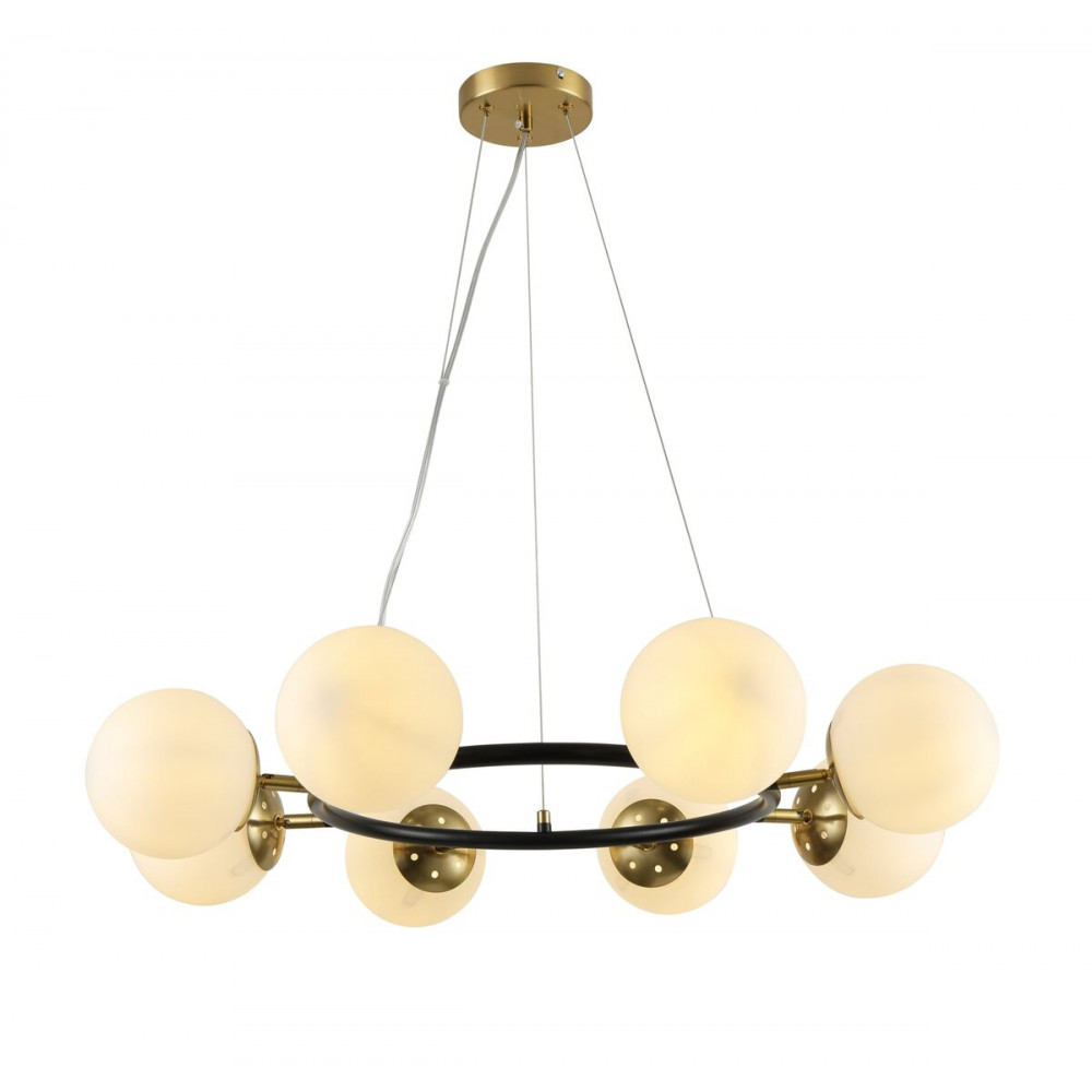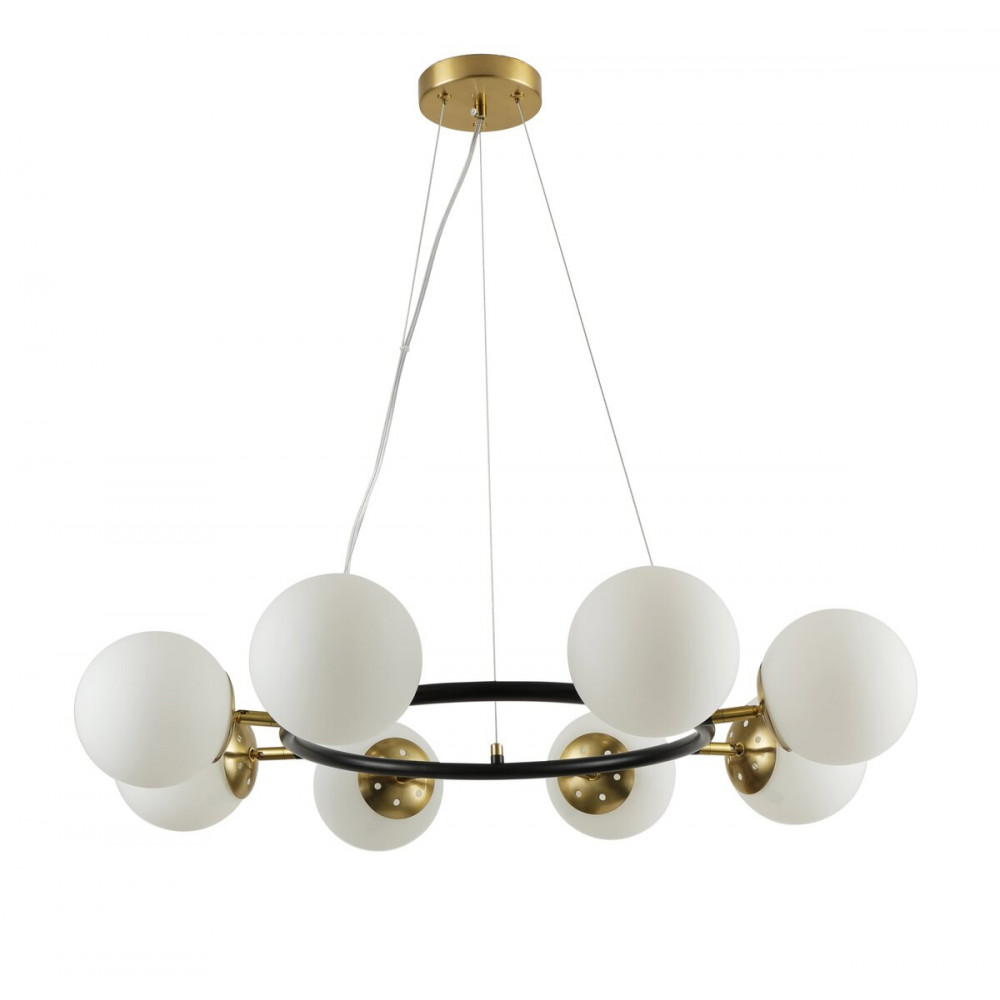 Виготовлений із позолоченого та чорного матового металу, каркас виглядає стильно та сучасно, додаючи люстрі витонченого блиску.