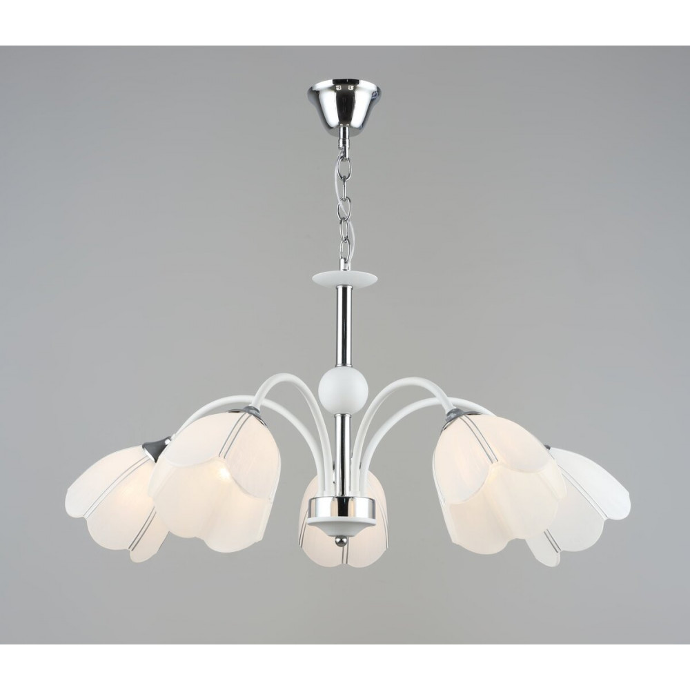 Люстра поєднує вишуканість білого кольору з сучасним хромованим оздобленням, створюючи стильний акцент у вашому інтер'єрі. Вона гармонійно доповнить будь-який сучасний простір, надаючи йому легкості та витонченості.