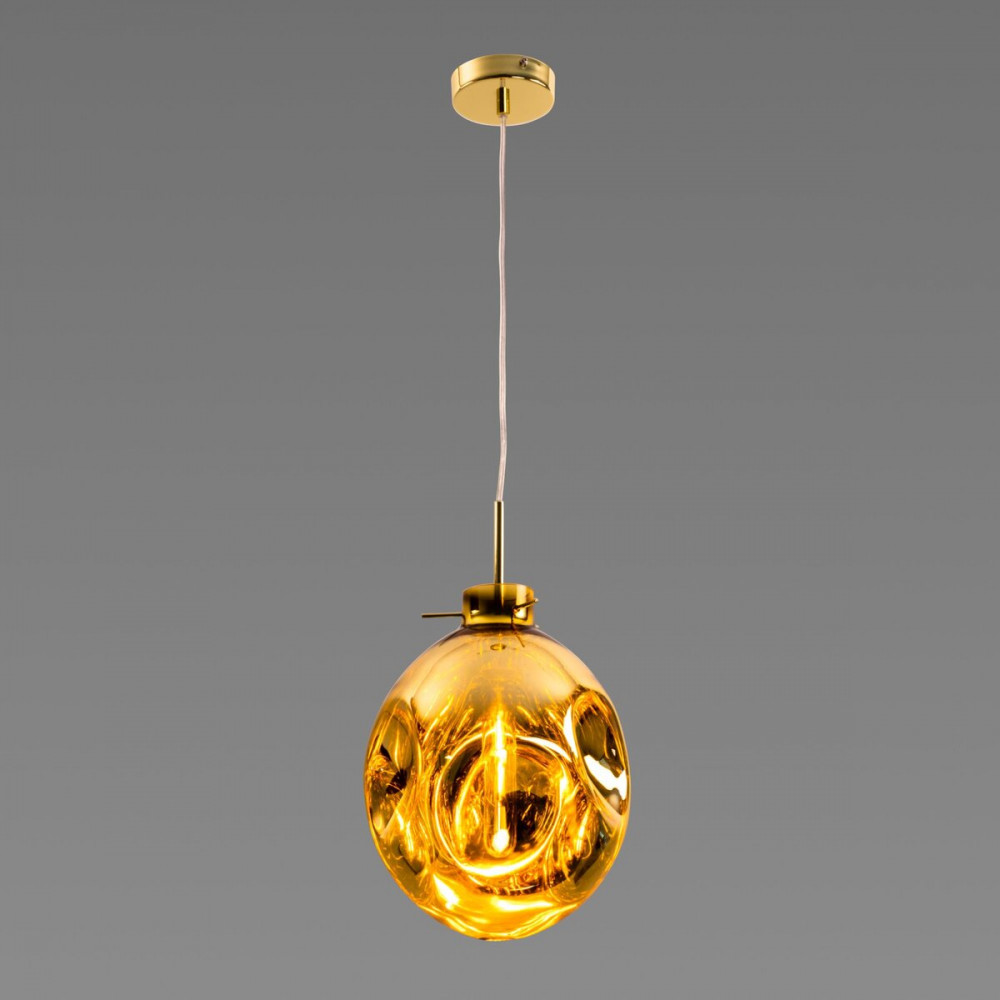 Плафон цієї люстри має золотистий колір і круглу форму, що надає йому вишуканості та неперевершеності. Він виготовлений зі скла, що створює неймовірну гру світла та додає ефекту розсіювання.