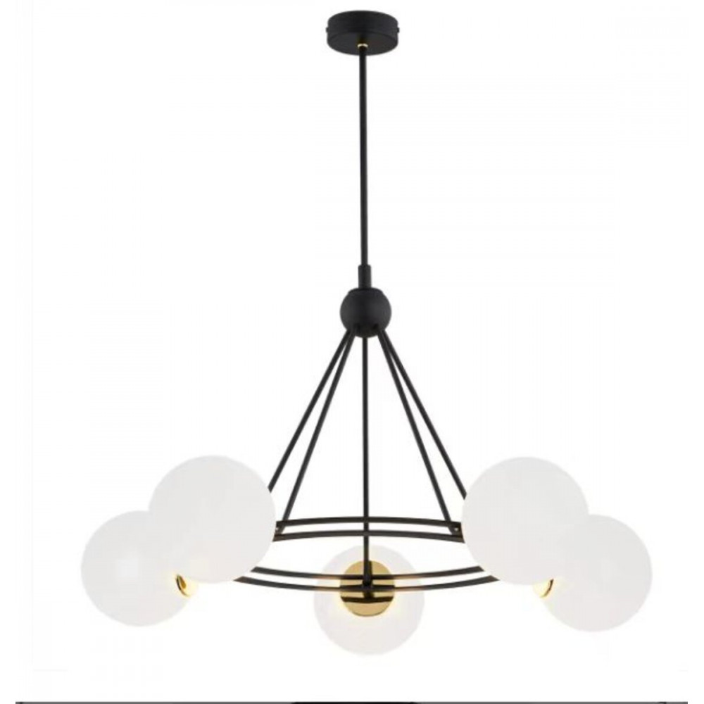 Підвісна люстра 9715-5 — це виняткове освітлювальне рішення, що поєднує стильний дизайн із витонченими мідними акцентами. Її контрастне забарвлення у чорний та мідний кольори стане центральним елементом інтер'єру, додаючи простору сучасної елегантності та теплого сяйва.