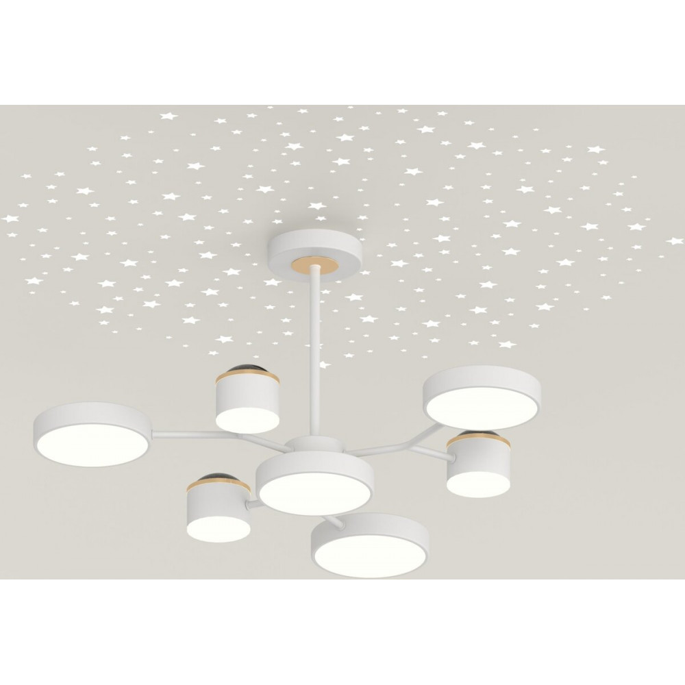 Вишуканий, сучасний та стильний світильник, який поєднує естетику і функціональність. Його білий корпус у поєднанні з золотими акцентами створює атмосферу легкості, елегантності та тепла. Особливий ефект — проєкція зірок на стелю, яка додає кімнаті чарівності та затишку.