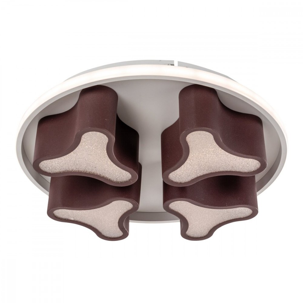 Чотири плафони з акрилу коричневого кольору розсіюють світло рівномірно, створюючи унікальну гру світла та тіней. Колірна температура, яка легко регулюється від теплого до холодного за допомогою пульта, дозволяє вам створити ідеальну атмосферу в будь-який момент.