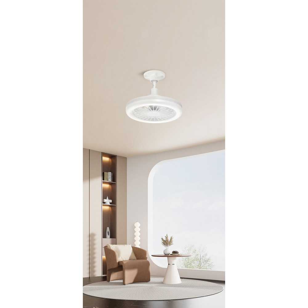 Відкрийте для себе багатофункціональне рішення для освітлення та комфорту зі світлодіодною люстрою-вентилятором 2H-010. Цей інноваційний світильник, виконаний у чистому білому кольорі, поєднує в собі ефективне світло та приємний потік повітря, що робить його ідеальним для невеликих кімнат, дитячих або кухонь. Її компактна конструкція, виготовлена з міцного поліпропілену, має розміри 260*H172 мм і не перевантажує простір. Завдяки поворотному шарніру, ви можете легко налаштувати напрямок світла та повітряного потоку, що є надзвичайно зручною функцією.