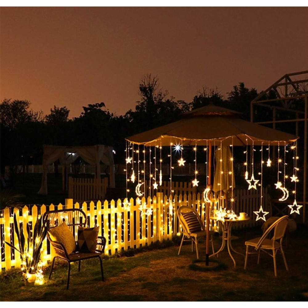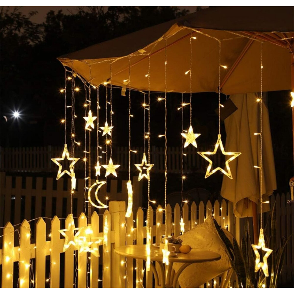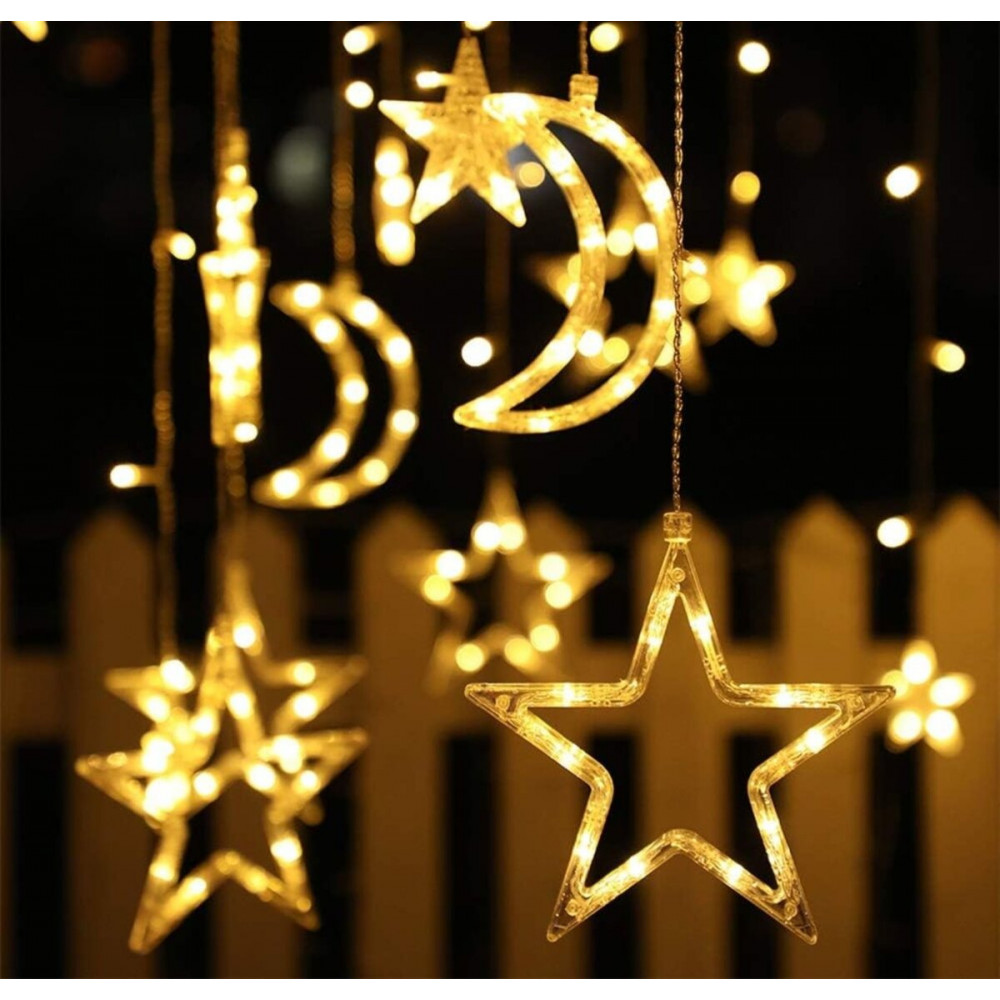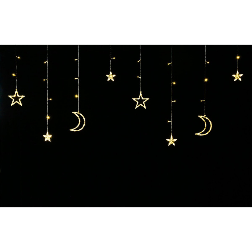 Гірлянда штора LED новорічна VALESO зірки/місяць 12 підвісок 3м×0,6м тепле світло LKS3436