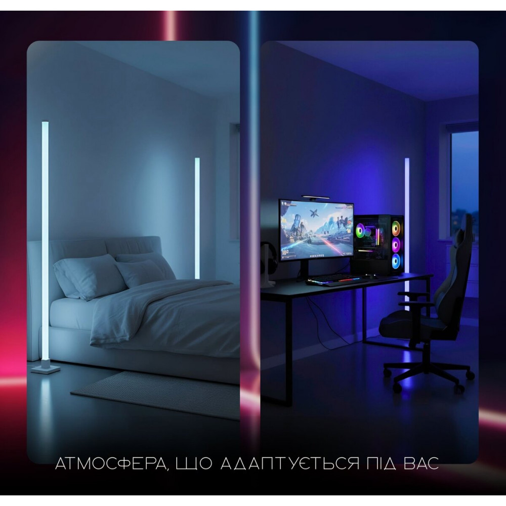 Створіть свій унікальний світ! Представляємо Розумний Світлодіодний Торшер VALESO LED RGB IC — інноваційне рішення для освітлення, яке перетворить Ваш простір на справжню арт-інсталяцію. Цей торшер є не просто джерелом світла, а повноцінною інтерактивною частиною інтер'єру, здатною реагувати на музику та Ваш настрій.