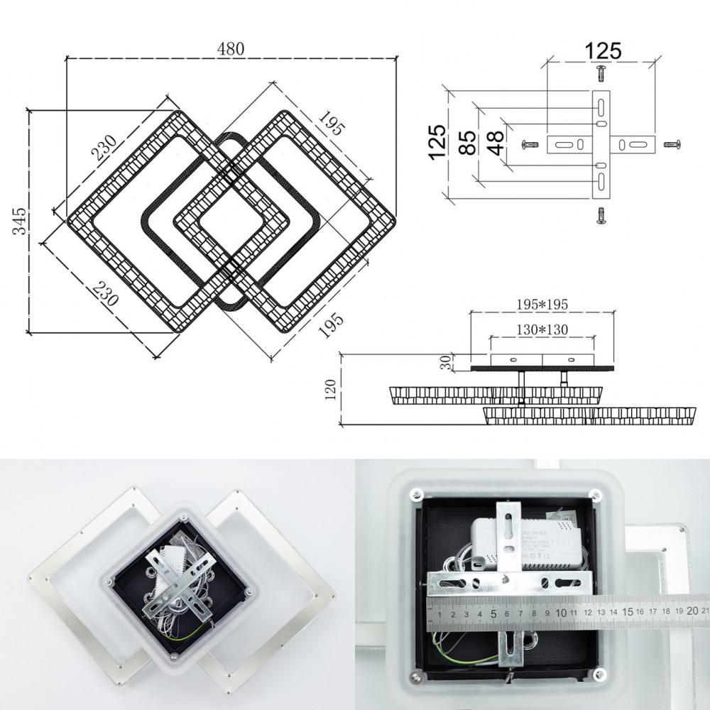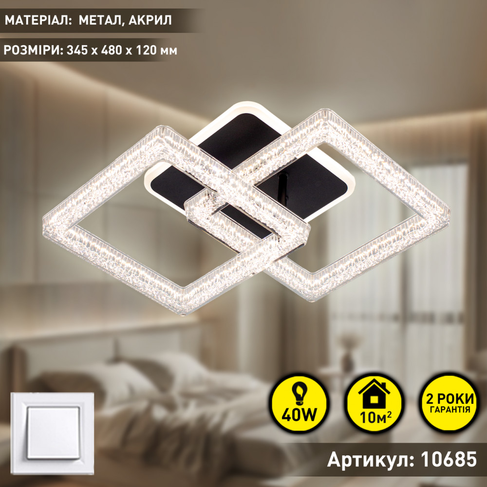 Керована світлодіодна люстра RADIST ICE 40 Вт 3S 345x480x120 мм Чорна